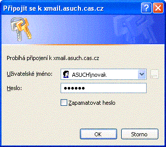 Do prvního řádku vyplňte doménu a své uživatelské jméno ve tvaru „doména\jméno“ (např. „ASUCH\novak“) a do druhého heslo.